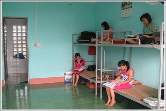 - Nhà trường có đủ ký túc xá miễn phí cho tất cả các học sinh, sinh viên với phòng ở tiện nghi, công trình phụ khép kín, thoáng mát, phục vụ tận tình. HS-SV ăn tại nhà ăn sinh viên của trường.