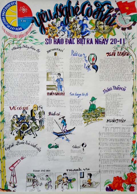 ![]() ![]() Làm việc gì cũng cần đến sự đam mê, có đam mê thì làm việc mới không biết mệt mỏi. Từ đam mê đến YÊU QUÝ cấp độ cao hơn. Thầy giáo cô giáo truyền nhiệt huyết, truyền đam mê, truyền tình yêu nghề cho các thế hệ học trò, phát triển mạnh mẽ và thành đạt trong cuộc sống. Đó chính là chủ đề YÊU NGHỀ CƠ KHÍ tên tờ báo đạt giải nhất hội thi báo tường năm nay.
