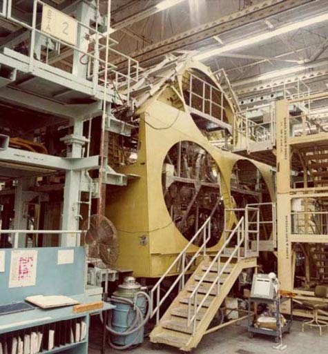 Cũng giống như những tàu con thoi khác của NASA, phần thân sau của Discovery bao gồm 3 động cơ chính sẽ giúp đưa nó vào không gian. Bức ảnh này là hình ảnh một động cơ chính của Discovery được lắp đặt tại nhà máy của công ty Rockwell, California vào 9/3/1982.