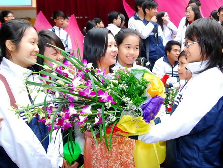 Học sinh tặng những bông hoa tươi thắm nhất tới cô giáo