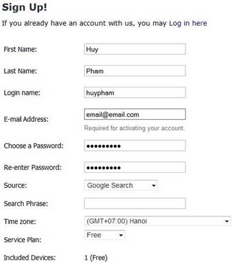 Để cài đặt phần mềm, trước tiên bạn phải đăng ký 1 tài khoản miễn phí của LockItTight, tài khoản này được sử dụng để theo dõi những dấu vết về laptop mà phần mềm gửi về.