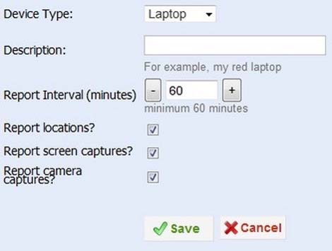 Tại đây, bạn có thể tăng hay giảm thời gian để phần mềm báo cáo (tối thiểu là 60 phút/lần), cũng như kích hoạt thêm các tính năng (chụp ảnh màn hình và chụp ảnh từ webcam). Bạn nên kích hoạt toàn bộ các tính năng để có được nhiều dấu vết về vị trí cũng như kẻ đánh cắp laptop.