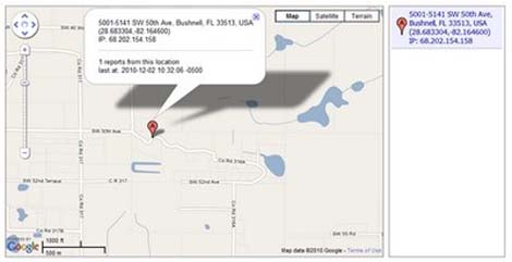 Mỗi khi laptop kết nối Internet, LockItTight sẽ tự động lưu lại thông tin nơi kết nối (địa chỉ ip, dịch vụ cung cấp Internet, thành phố, quốc gia…) và đánh dấu chúng trên bản đồ. (Xem thông tin tại mục Location trong trang quản lý)