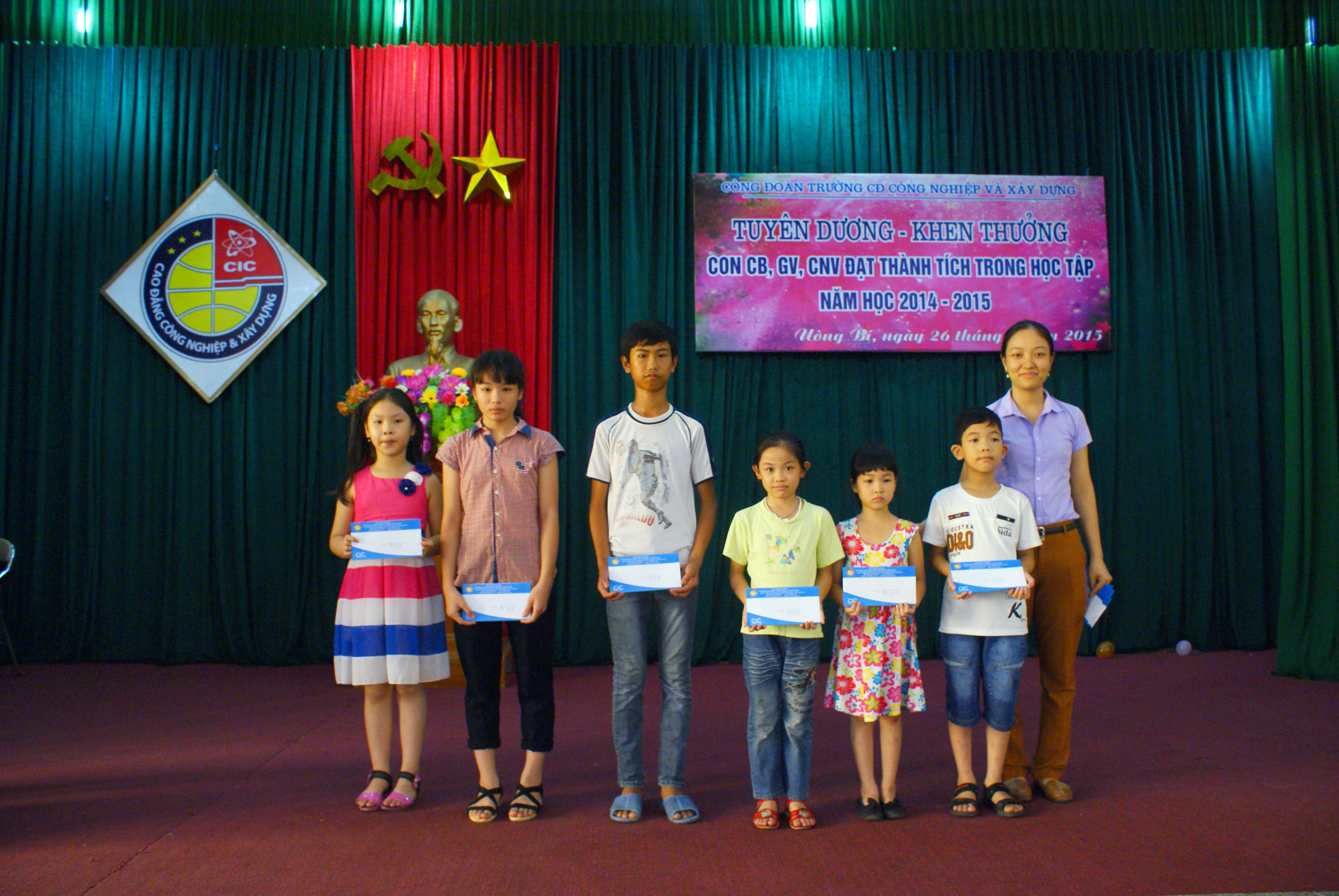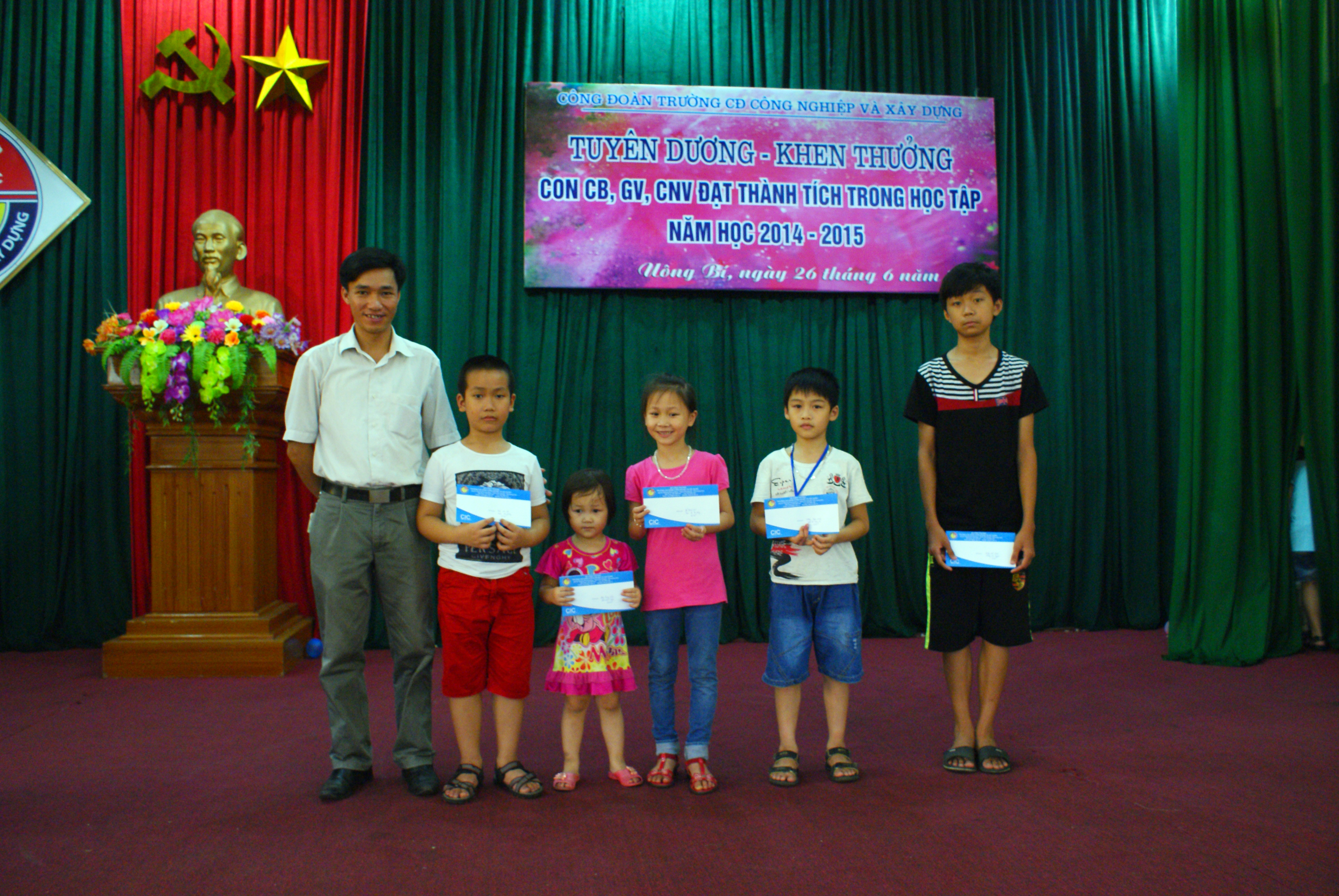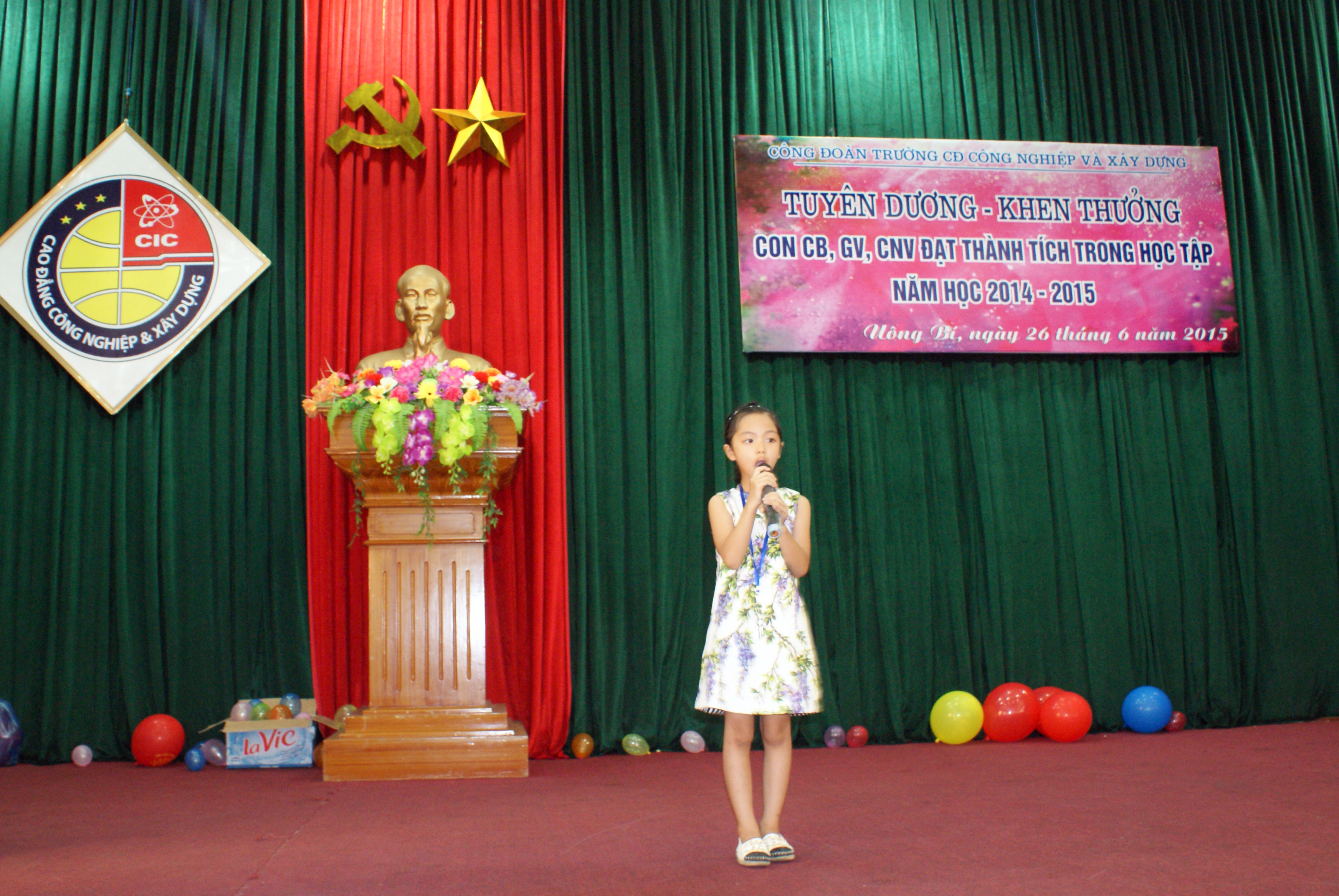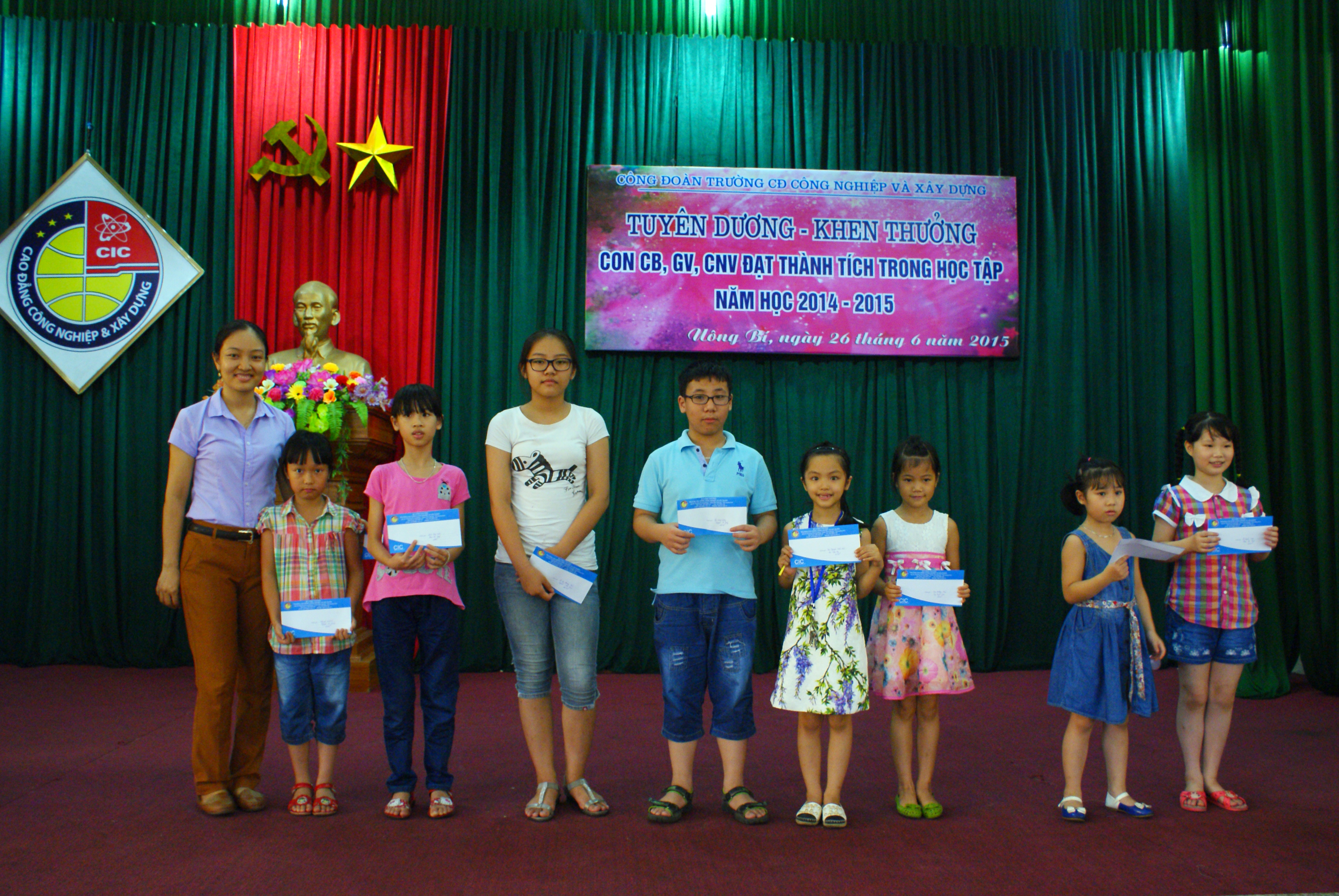 Tại buổi gặp mặt, thay mặt lãnh đạo nhà trường, đồng chí Cù Chính Sen, Chủ tịch Công đoàn nhà trường đã biểu dương và khen thưởng cho 147 em học sinh các cấp học là con cán bộ, giáo viên và công nhân viên của trường có thành tích cao trong học tập năm học 2014-2015, tổng giá trị phần thưởng là 18,4 triệu đồng.