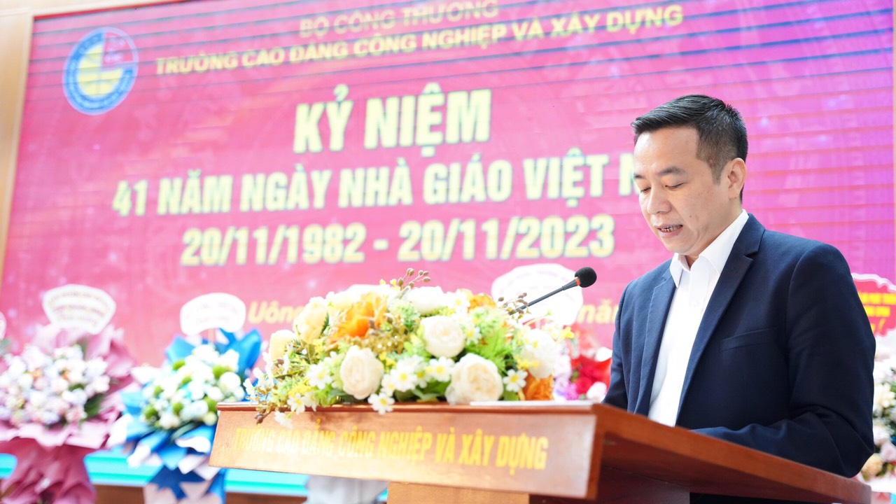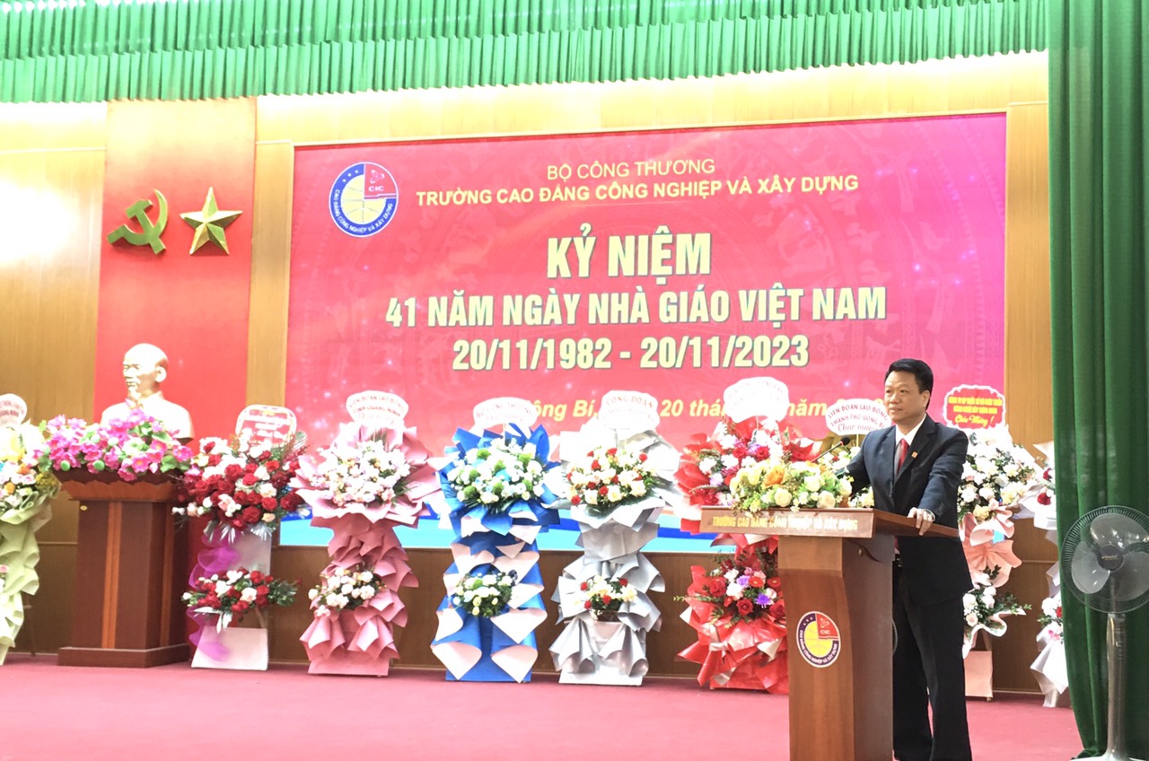 Phát biểu tại buổi kỷ niệm, TS. Đỗ Minh Chiến cảm ơn các đồng chí lãnh đạo Bộ, Sở, Ban, Ngành đã luôn quan tâm, hỗ trợ, tạo điều kiện, luôn theo sát các hoạt động của nhà trường; các cơ quan, doanh nghiệp, đoàn thể đã động viên, chúc mừng nhà trường nhân kỷ niệm Ngày Nhà giáo Việt Nam; đồng chí gửi chúc mừng đến quý thầy cô giáo, viên chức, người lao động đương chức và đã nghỉ hưu - những người đã và đang tâm huyết, cống hiến hết sức mình cho sự nghiệp giáo dục đào tạo của đất nước và cho sự phát triển của nhà trường; không ngừng phấn đấu cho chất lượng đào tạo cũng như thương hiệu của nhà trường. mong các nhà giáo thường xuyên học tập, nâng cao trình độ, tâm huyết với nghề.