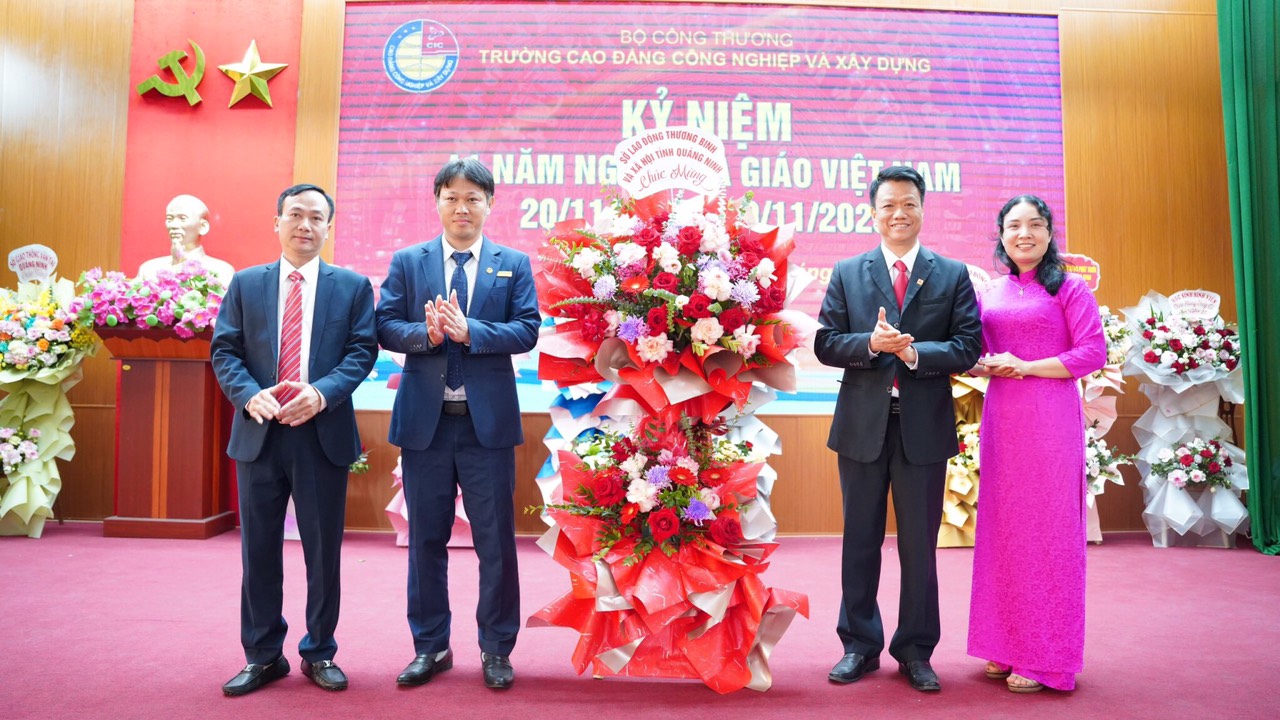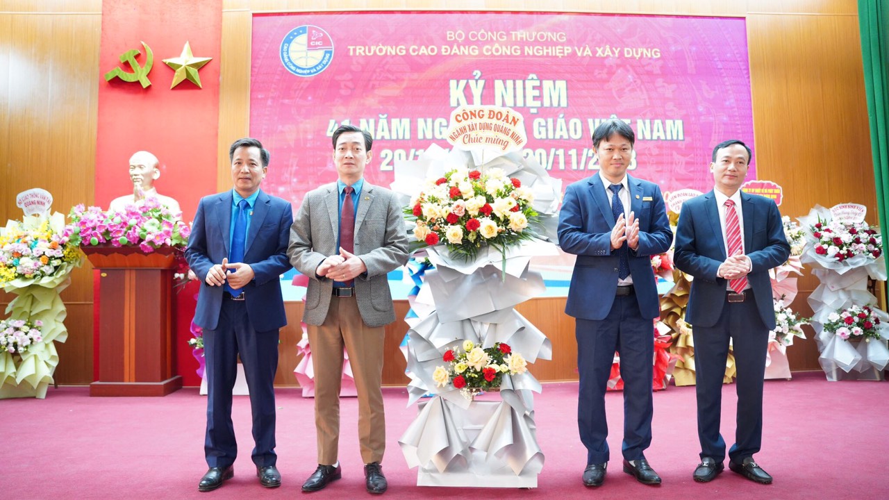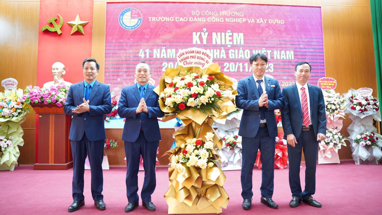 Về phía Trường Cao đẳng Công nghiệp và Xây dựng có TS. Đỗ Minh Chiến - Bí thư đảng ủy, Hiệu trưởng nhà trường; NGƯT, TS. Lương Văn Tiến – nguyên Hiệu trưởng nhà trường; các đồng chí trong Ban giám hiệu, trưởng phó các phòng, khoa, đơn vị nhà trường và toàn thể các thầy, cô giáo, các ông – bà nguyên là lãnh đạo nhà trường qua các thời kỳ, đại diện các em học sinh sinh viên.
