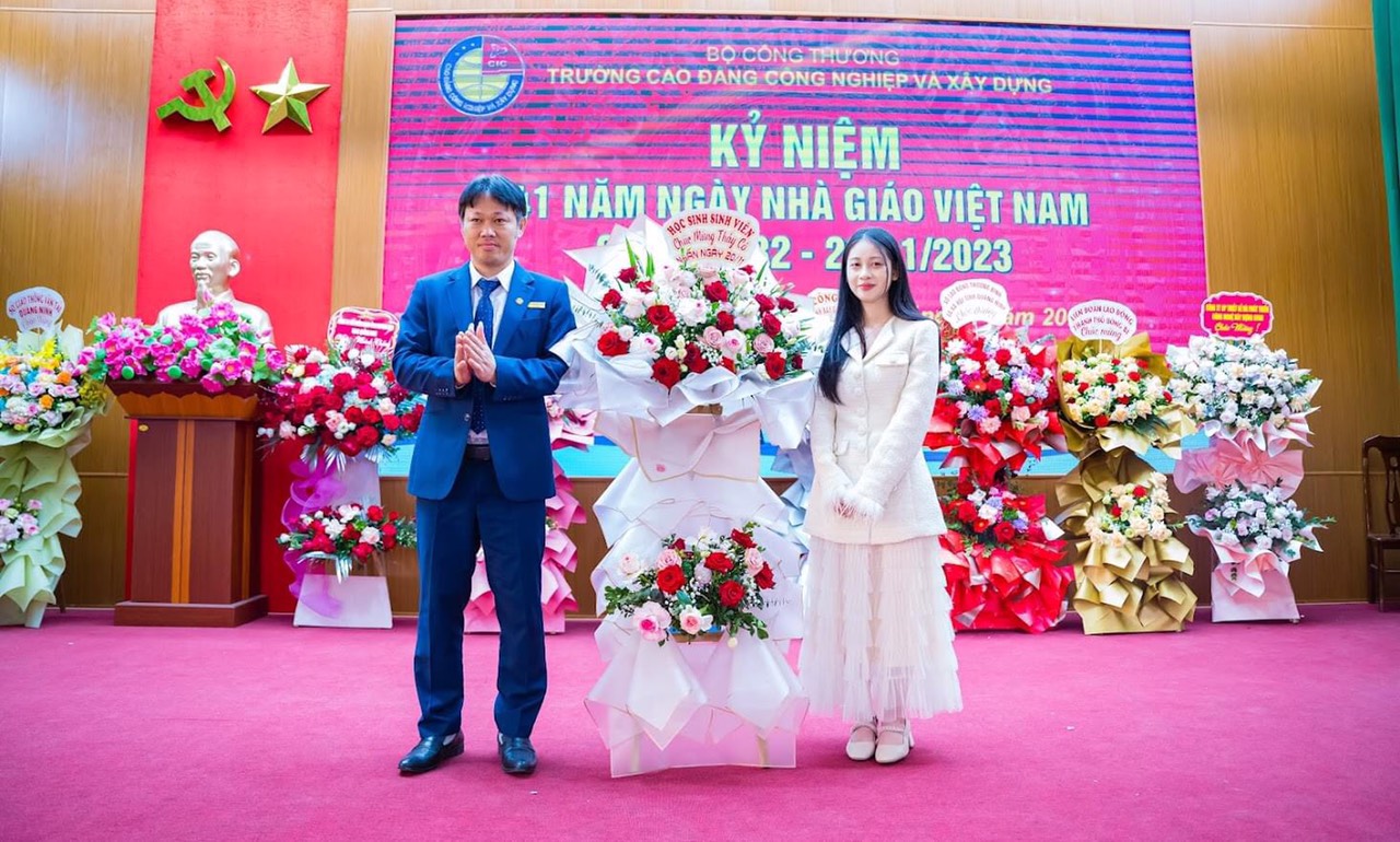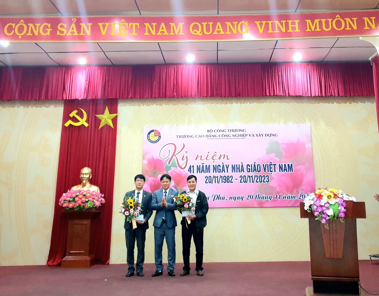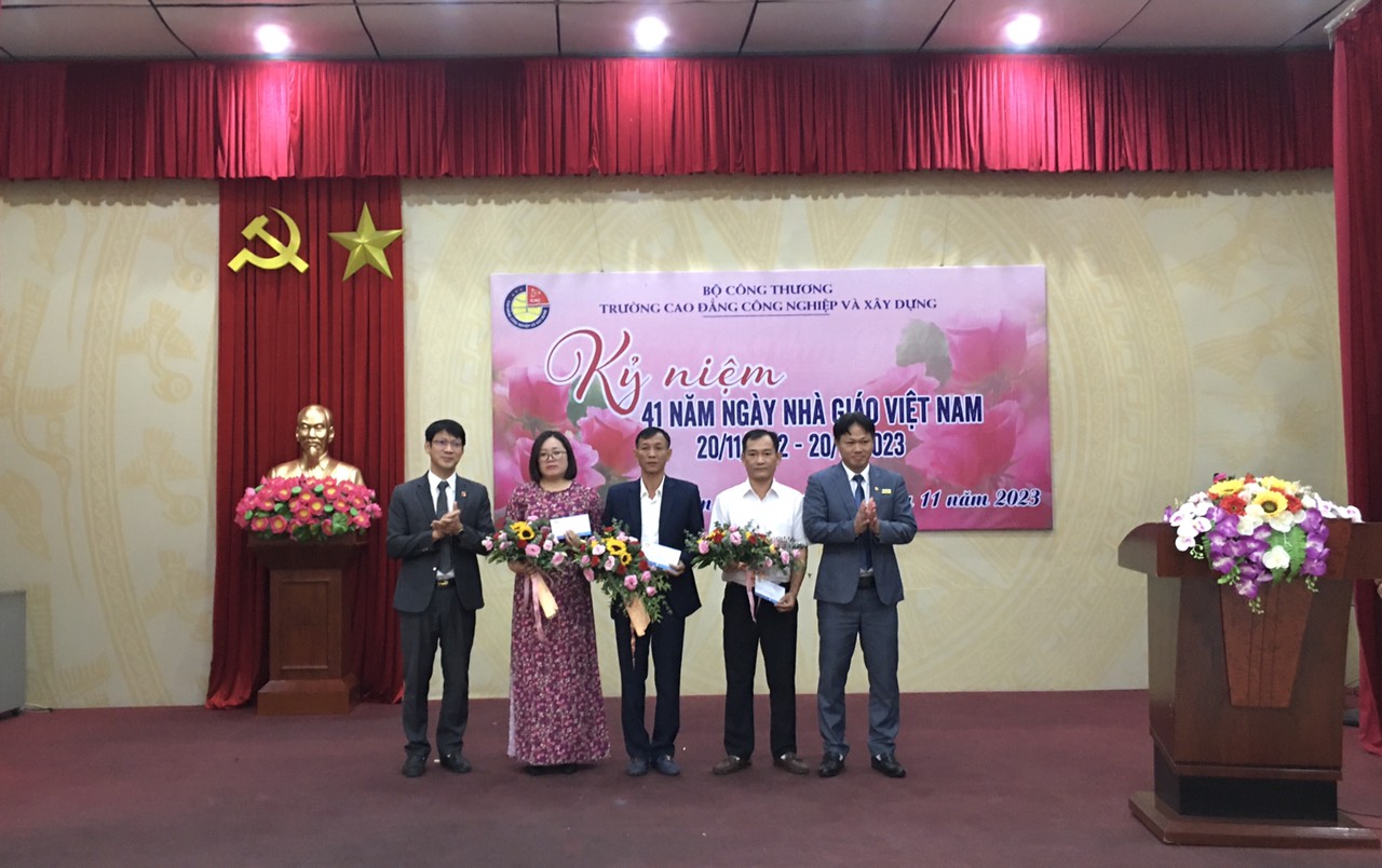 Lãnh đạo nhà trường tặng hoa và quà chúc mừng các nhà giáo đạt thành tích cao tại Hội giảng Nhà giáo Giáo dục nghề nghiệp tỉnh Quảng Ninh năm 2023 và Hội thi Giáo viên dạy giỏi trung học phổ thông cấp tỉnh, năm 2023