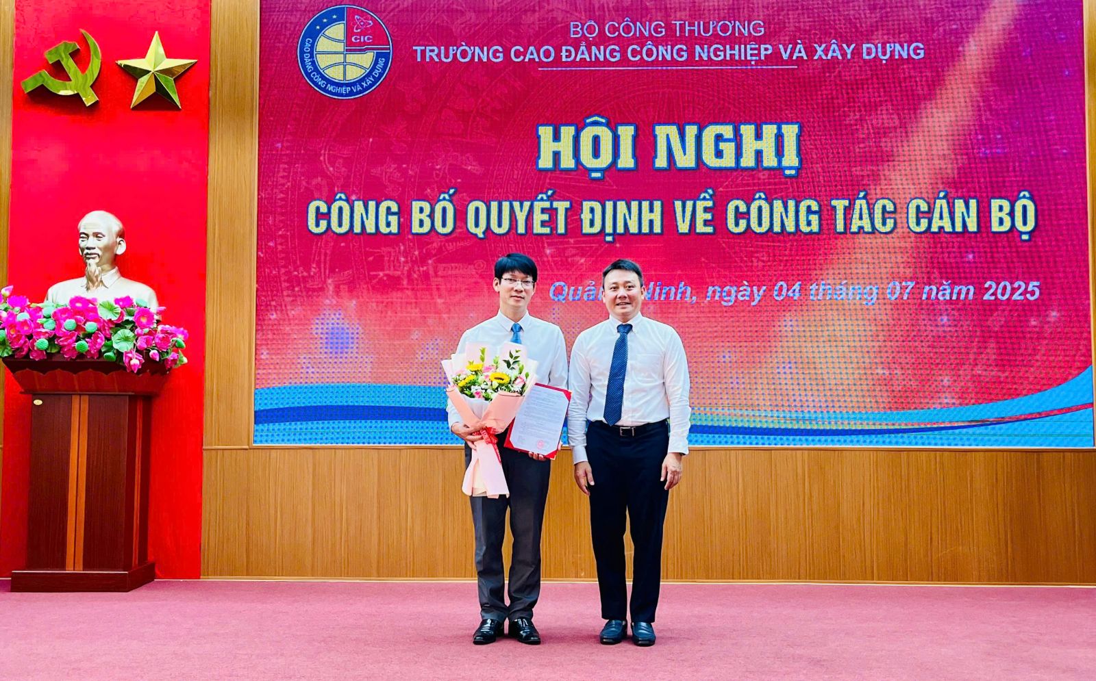 Tại buổi lễ, đồng chí Phạm Hữu Thành Hội đại diện Vụ Tổ chức cán bộ - Bộ Công Thương đã công bố Quyết định của Bộ trưởng Bộ Công Thương về việc bổ nhiệm lại đồng chí Hoàng Minh Hải tiếp tục giữ chức vụ Phó Hiệu trưởng Trường Cao đẳng Công nghiệp và Xây dựng nhiệm kỳ 2025-2030.