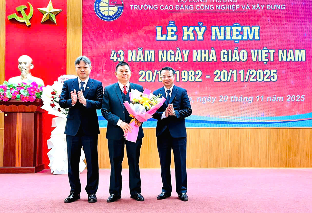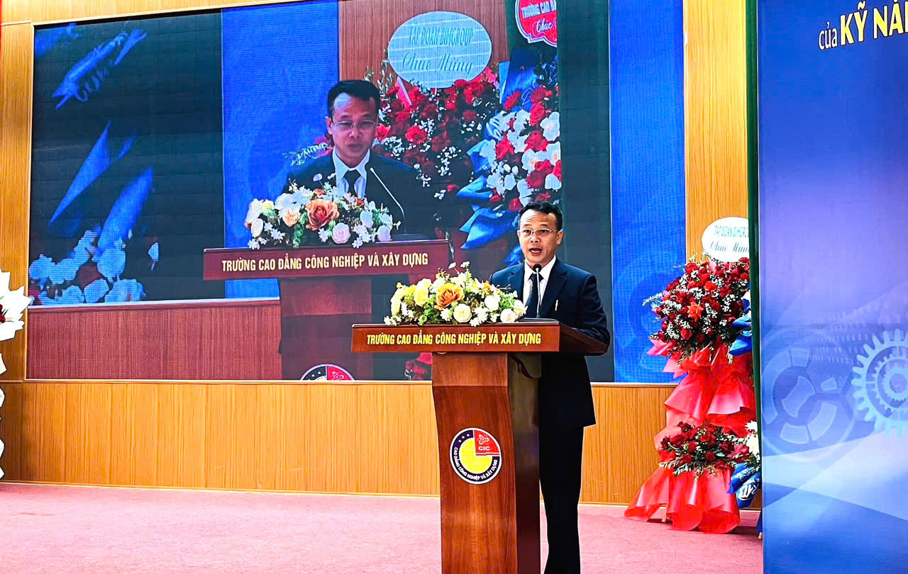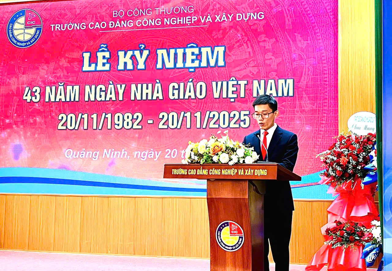 Chung vui với Nhà trường, đồng chí Nguyễn Trung Hải ghi nhận và biểu dương những kết quả nổi bật mà cán bộ, giảng viên Trường Cao đẳng Công nghiệp và Xây dựng đã đạt được trong thời gian qua. Đồng chí nhấn mạnh lòng yêu nghề và tinh thần cống hiến của đội ngũ nhà giáo là yếu tố quan trọng góp phần nâng cao chất lượng đào tạo, đáp ứng yêu cầu phát triển nguồn nhân lực cho địa phương. Đồng chí chúc các thầy, cô luôn mạnh khỏe, giữ vững ngọn lửa đam mê và tiếp tục đóng góp cho sự phát triển của Nhà trường, ngành giáo dục và tỉnh Quảng Ninh.