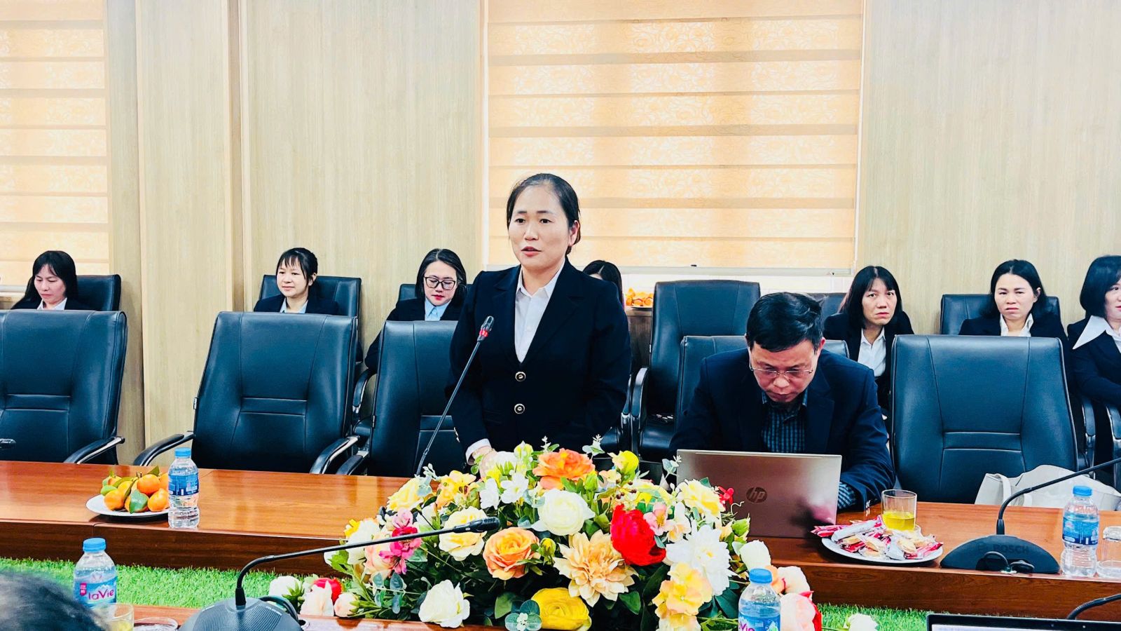 Đ/c Nguyễn Thị Dung – Phó Trưởng phòng Đào tạo, phụ trách công tác Tuyển sinh Báo cáo tổng kết công tác tuyển sinh năm 2025 và phương hướng nhiệm vụ tuyển sinh năm 2026