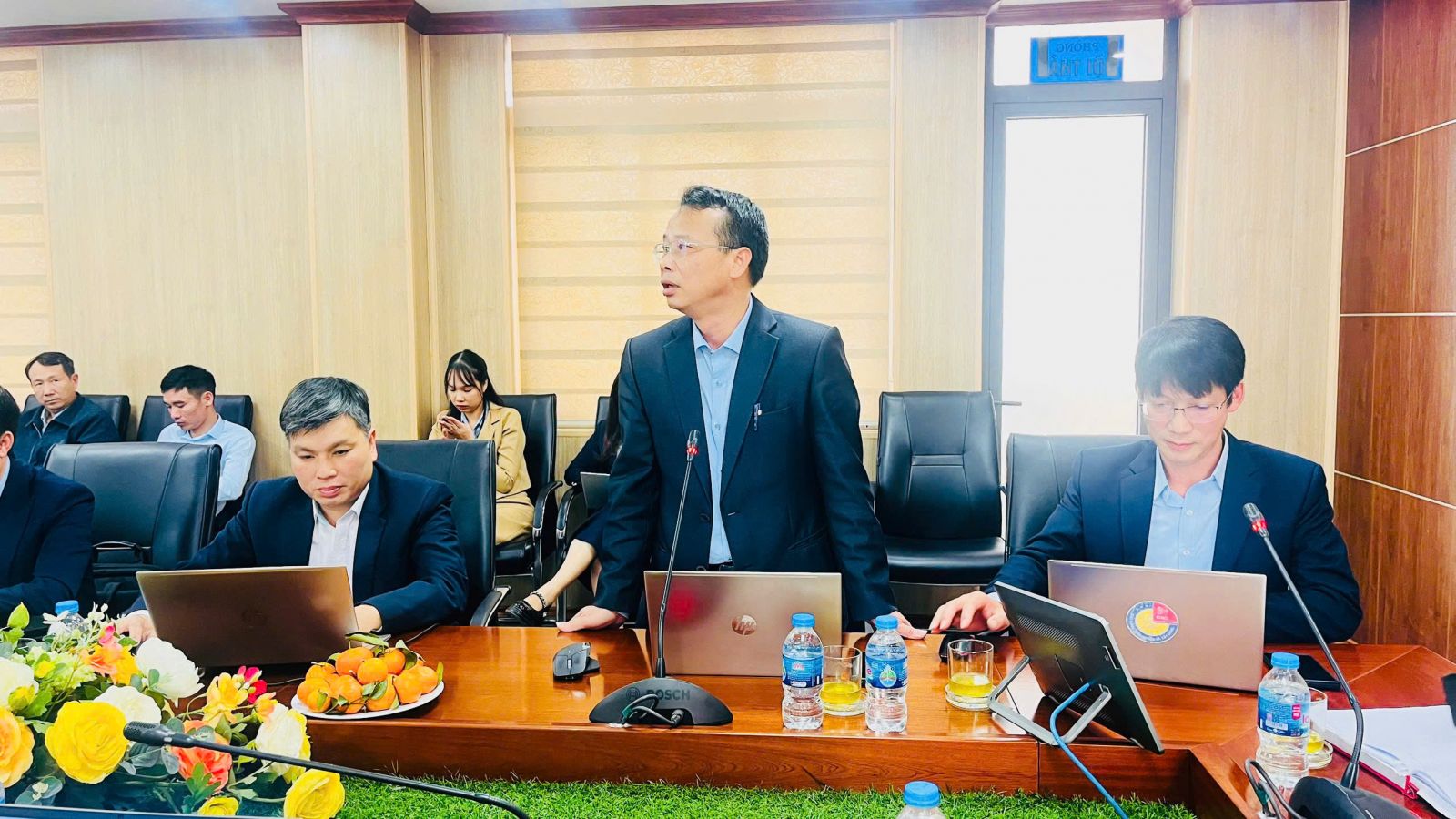 Tham dự Hội nghị có TS. Đỗ Minh Chiến – Hiệu trưởng, Chủ tịch Hội đồng tuyển sinh; các đồng chí trong Hội đồng tuyển sinh, Ban Thư ký, Ban Phúc tra; Tổ trưởng các tổ tuyên truyền, tư vấn tuyển sinh; các đồng chí cán bộ, giáo viên, công nhân viên có thành tích xuất sắc trong công tác tuyên truyền, tư vấn tuyển sinh năm 2025.