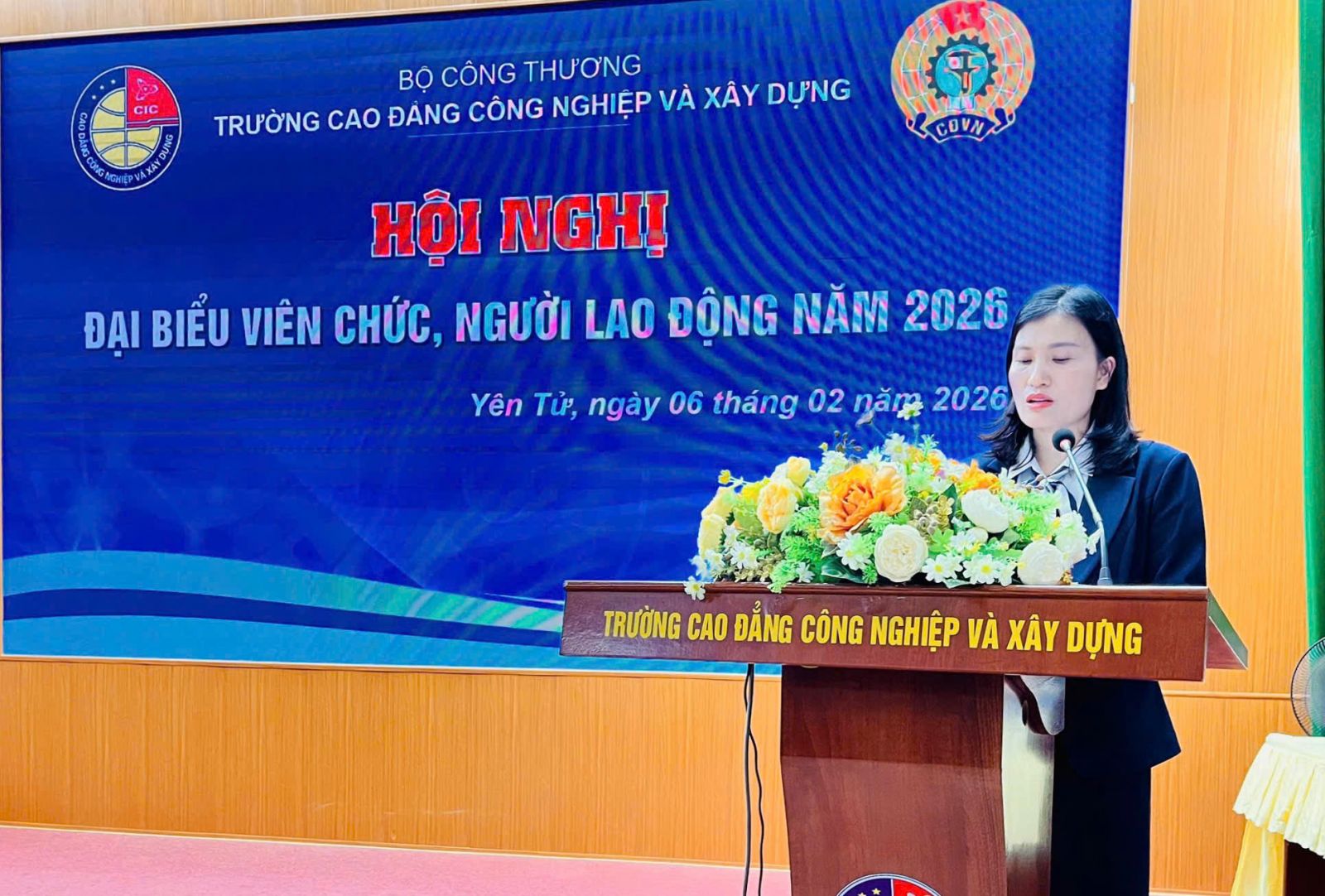 Hội nghị đã thống nhất thông qua Nghị quyết Hội nghị Viên chức năm 2026, làm cơ sở để Trường Cao đẳng Công nghiệp và Xây dựng triển khai các nhiệm vụ trọng tâm trong năm 2026, hướng tới mục tiêu nâng cao chất lượng giáo dục nghề nghiệp, tăng cường hiệu quả quản trị, phát triển Nhà trường ổn định, bền vững, đáp ứng yêu cầu đào tạo nguồn nhân lực cho ngành Công Thương, tỉnh Quảng Ninh và xã hội trong giai đoạn mới.