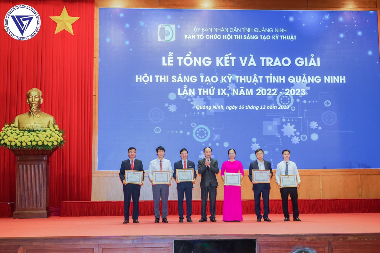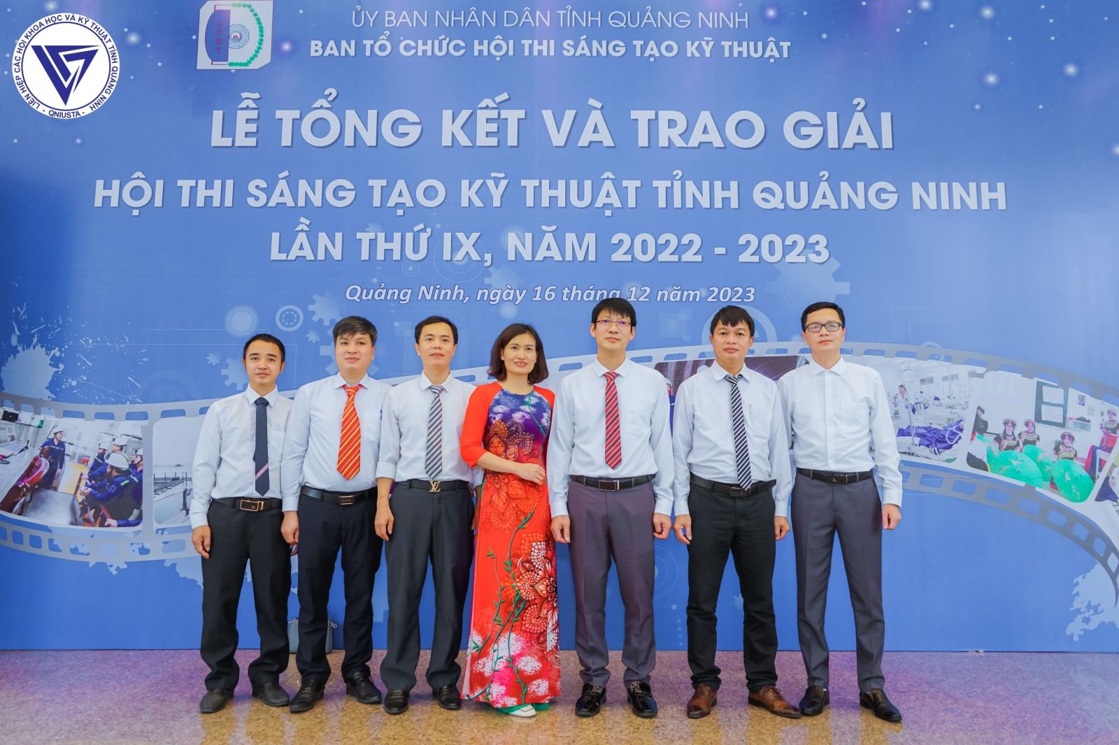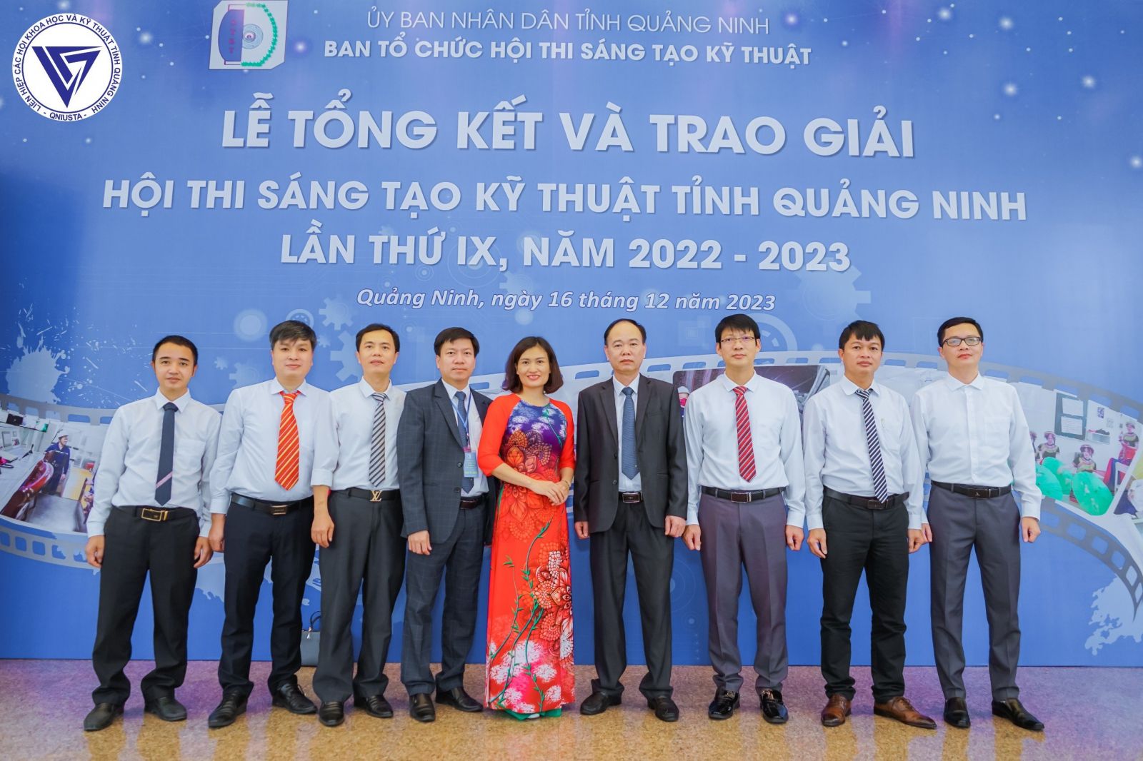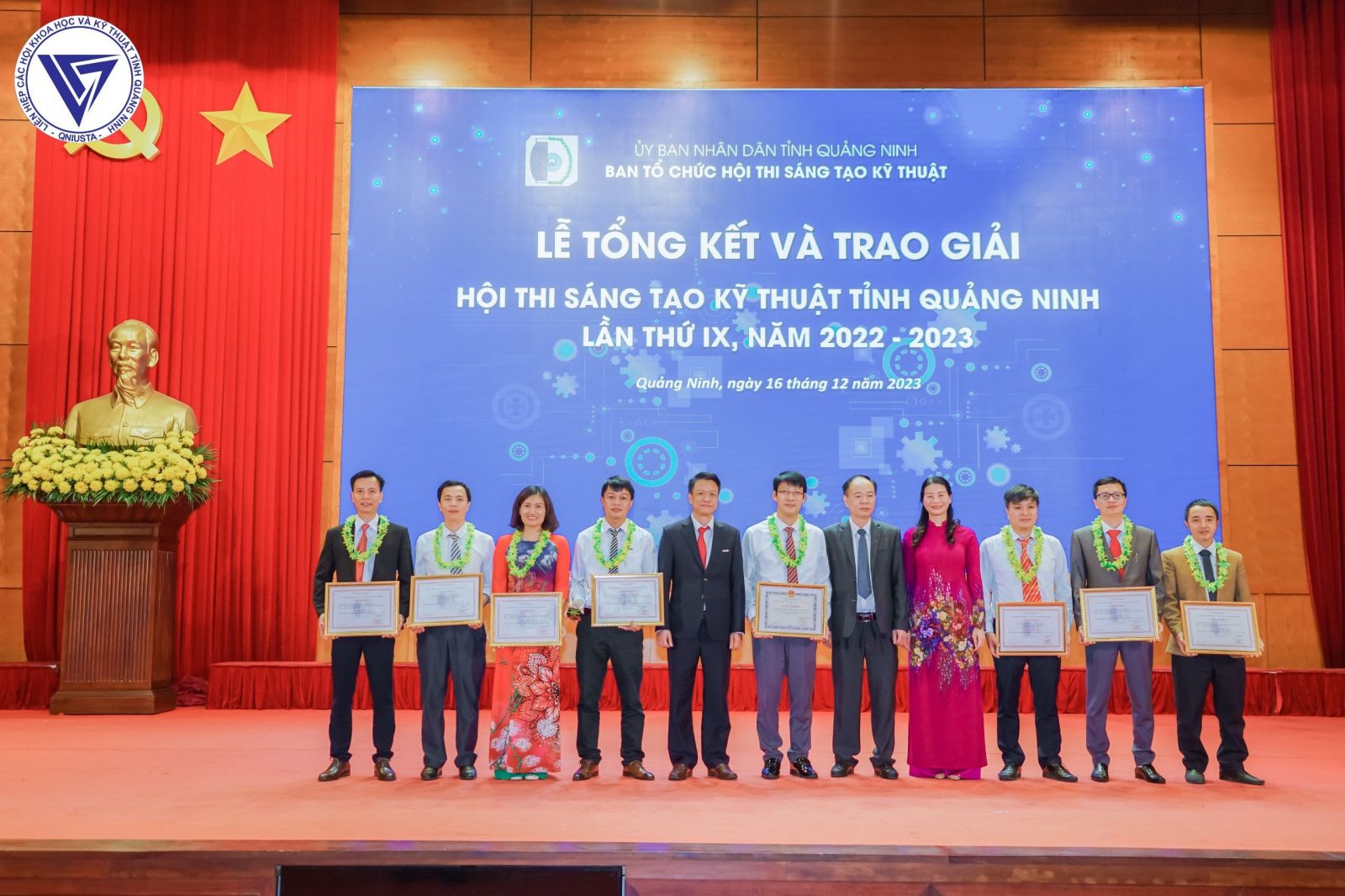 Đại diện tác giả, nhóm tác giả có các đề tài, giải pháp đạt giải chụp ảnh cùng Lãnh đạo Liên hiệp các Hội khoa học và Kỹ thuật tỉnh Quảng Ninh.