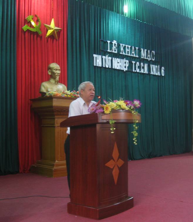 Tại buổi khai mạc, thầy giáo Tô Văn Hưởng đã phát biểu và căn dặn Cán bộ giáo viên cùng 318 học sinh thực hiện kỳ thi nghiêm túc, đạt kết quả cao.