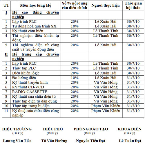 Nhằm đáp ứng nâng cao chất lượng đào tạo, hiện nay một số chương trình các nghề của các Hệ, nội dung cũ không đáp ứng được yêu cầu đào tạo tình hình thực tế hiện nay, cần phải chỉnh sửa, bổ sung mới một số nội dung. Khoa Điện lập kế hoạch Hội thảo cụ thể như sau: