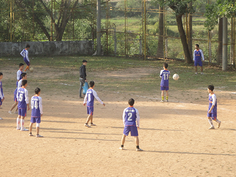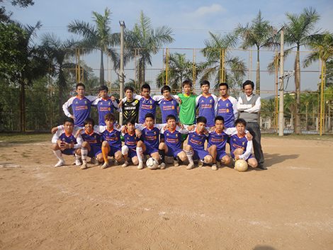 Đội bóng đá nam Khoa Xây Dựng tập luyện trước trận đấu
