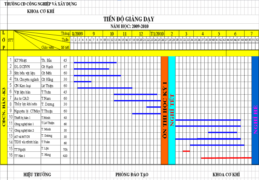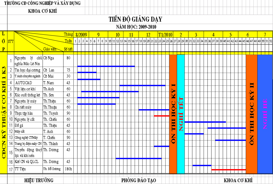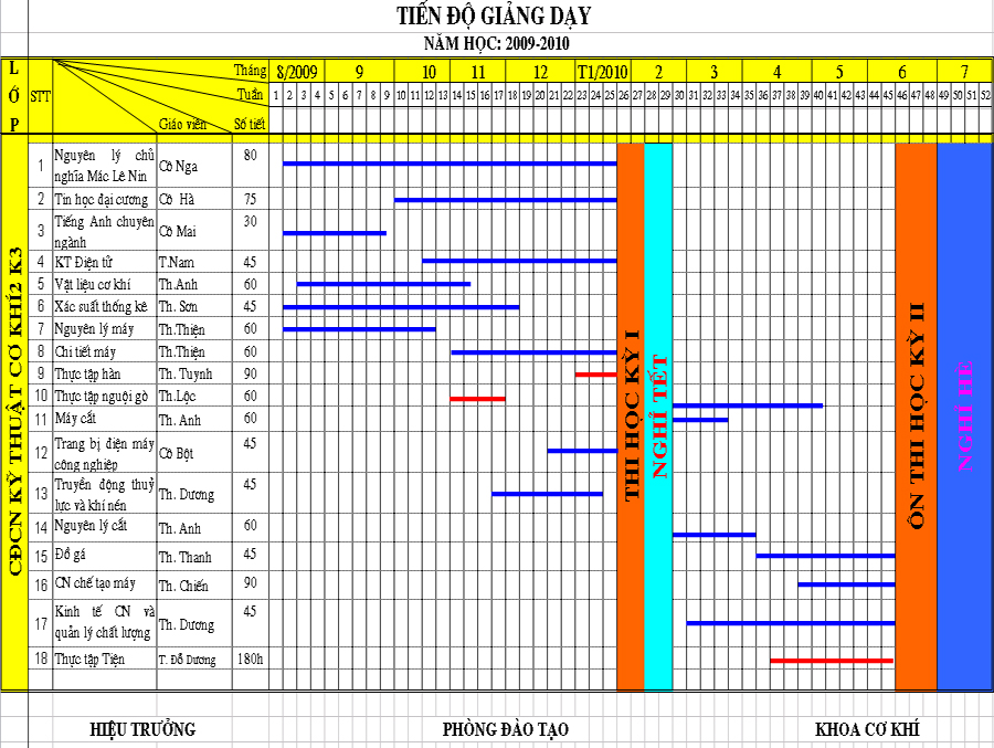 Tiến độ giảng dạy năm học 2009 - 2010 Các lớp Cao đẳng khóa 3