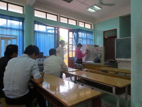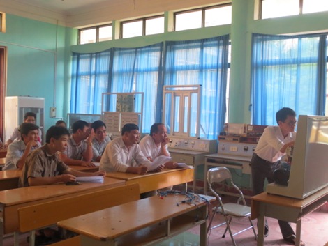 Thông qua hội thảo chuyên đề và thực hành kỹ năng cài đặt biến tần khởi động cho động cơ điện, tập thể giáo viên khoa điện được trang bị thêm kiến thức cơ bản và kỹ năng cài đặt biến tần để nâng cao chất lượng dạy học và giải quyết những công việc gặp phải trong thực tế liên quan đến khởi động mềm và sử dụng biến tần. Một số hình ảnh trong ngày hội thảo chuyên đề và thực hành cài đặt biến tần: